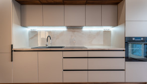 - Denná časť pozostávajúca z modernej kuchyne s kuchynskou linkou na mieru, vybavenou kvalitnými spotrebičmi,