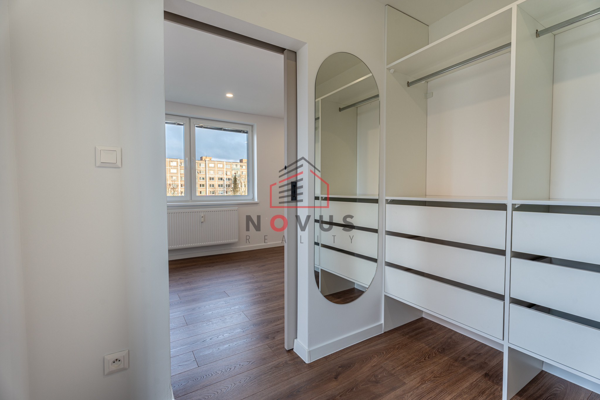 - Spálňa s priestranným šatníkom a malým balkónom
