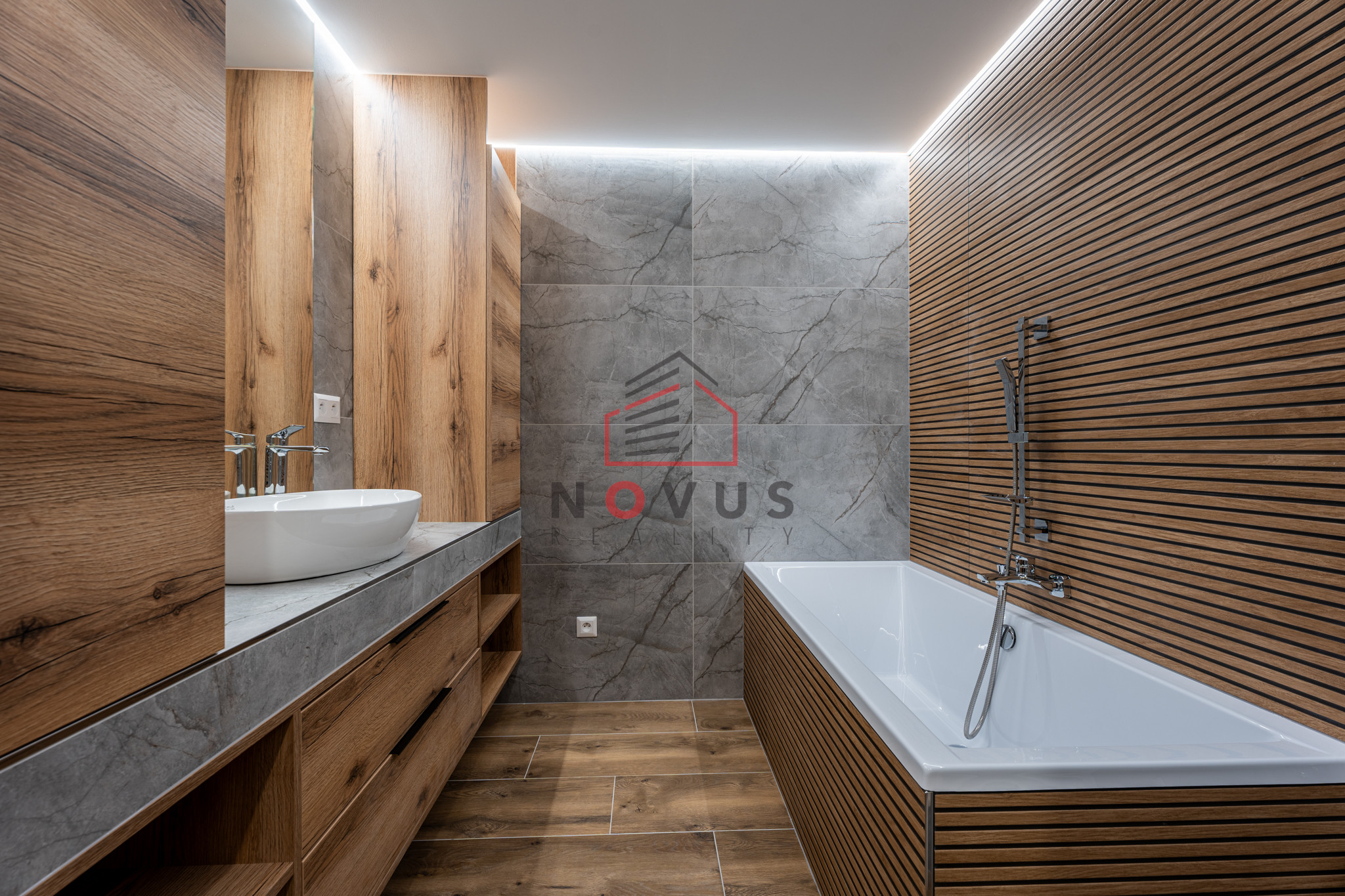 - Veľká kúpeľňa s vaňou a dostatkom úložného priestoru